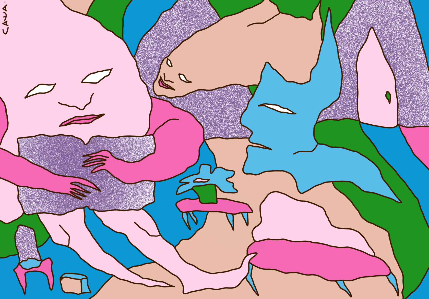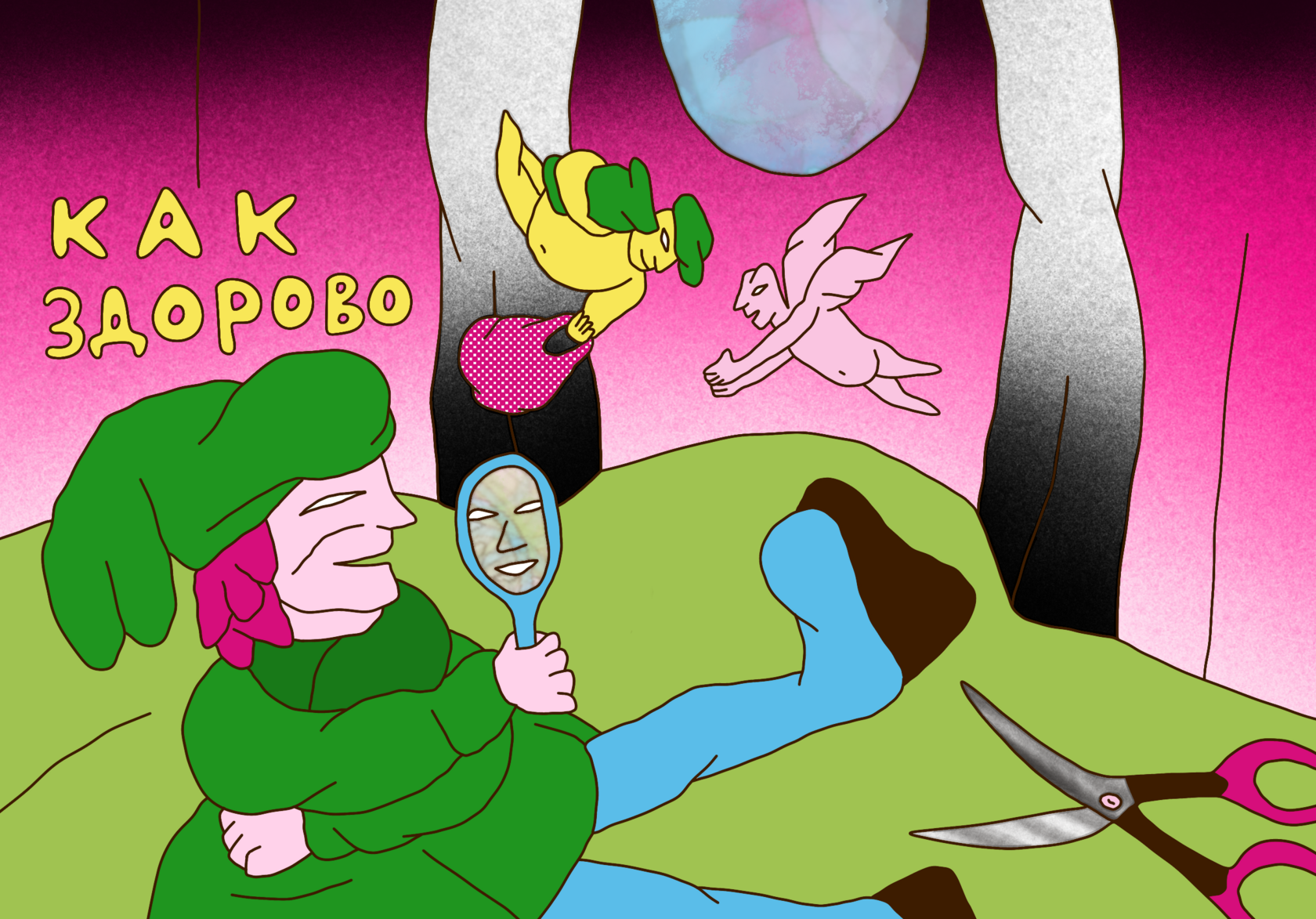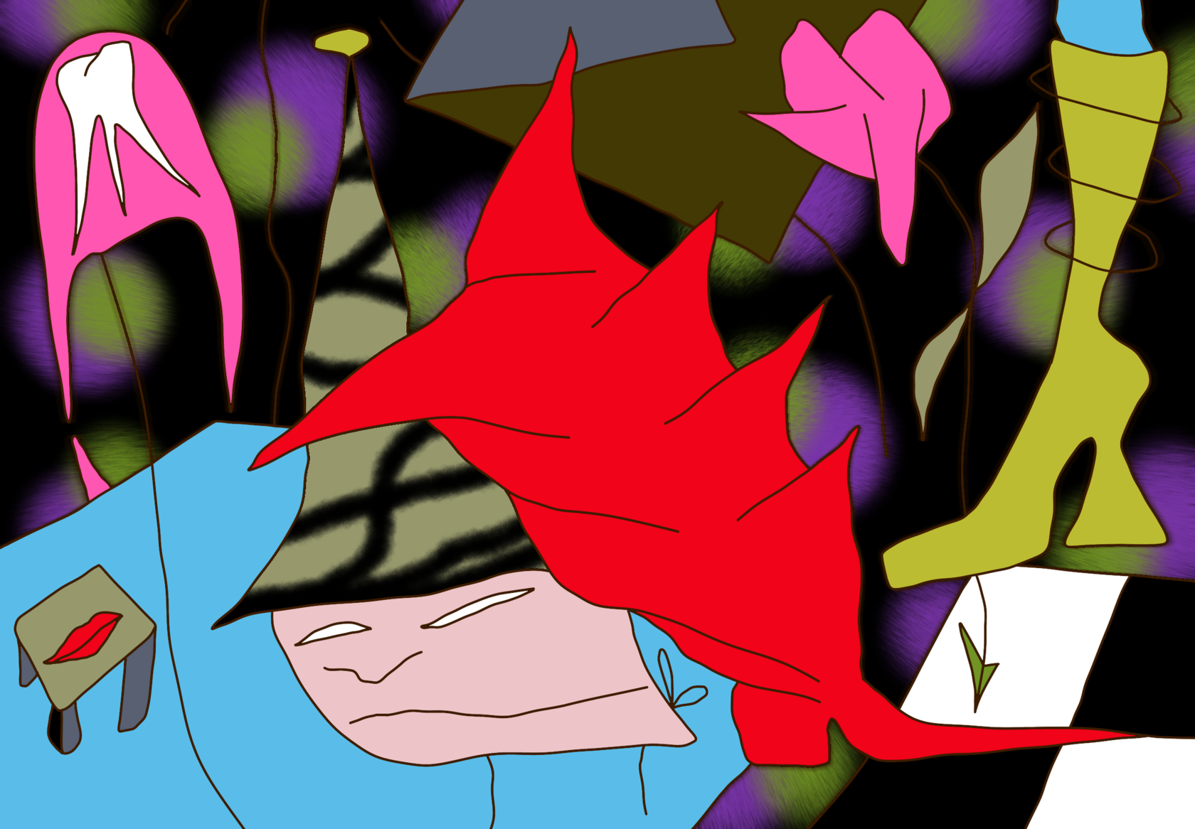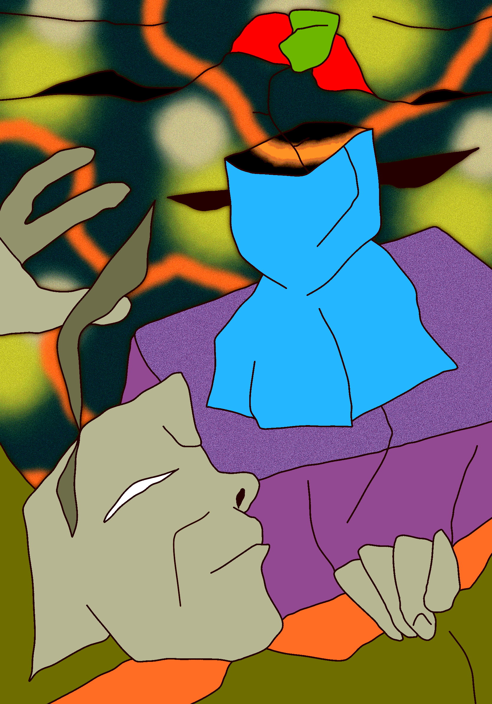 Tragicomic subtly trembling acid surrealism. The viewer is invited to an expressive, slightly absurd spectacle with openly odd colorful characters and their unhurried days, delicate issues and frequent changes of mood.