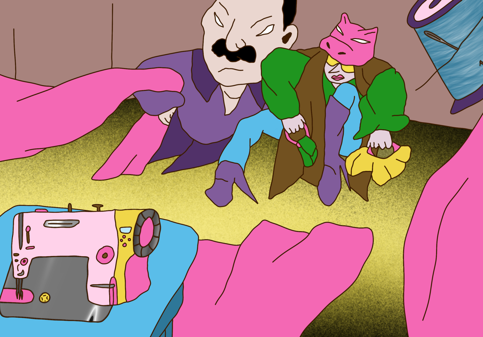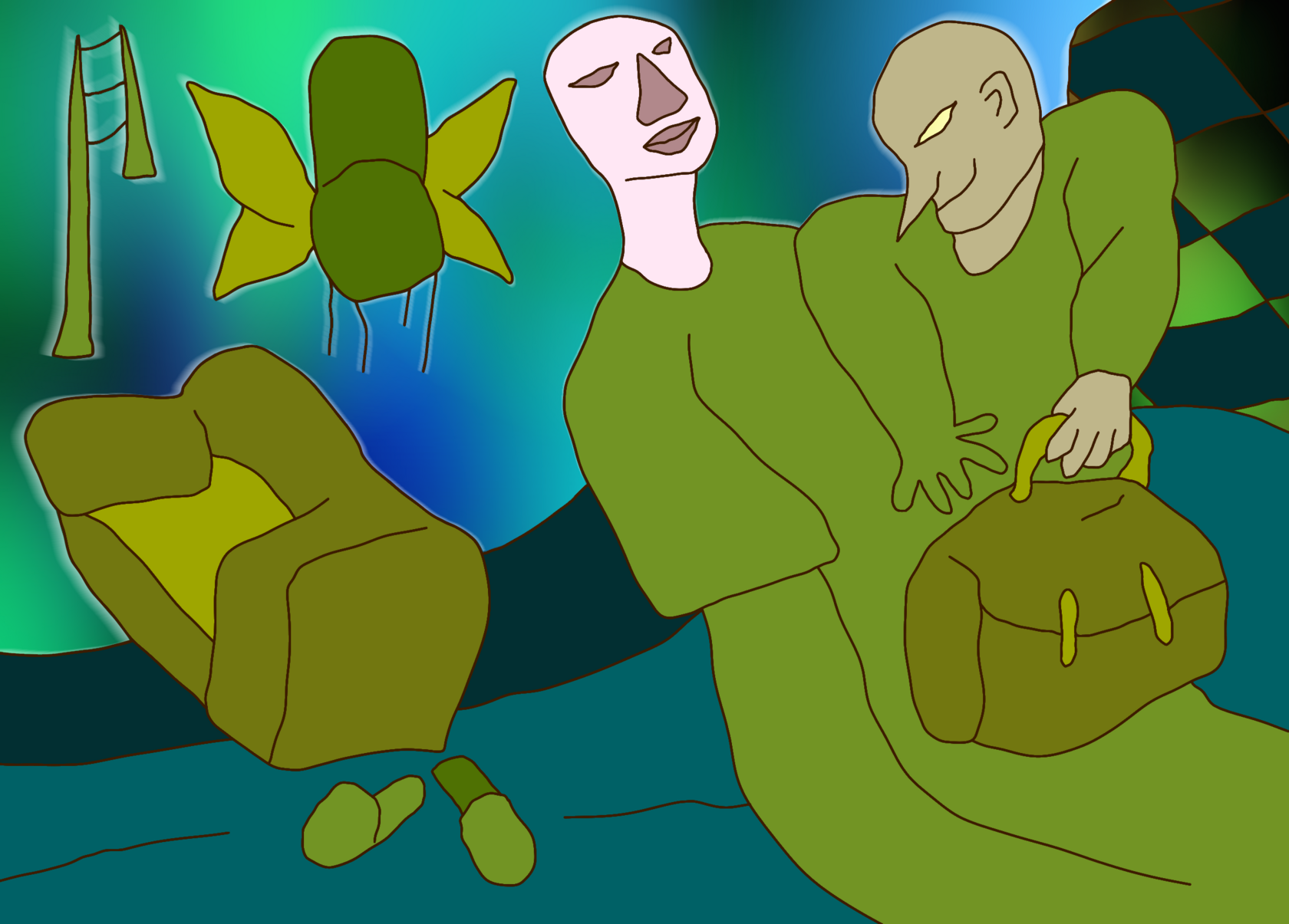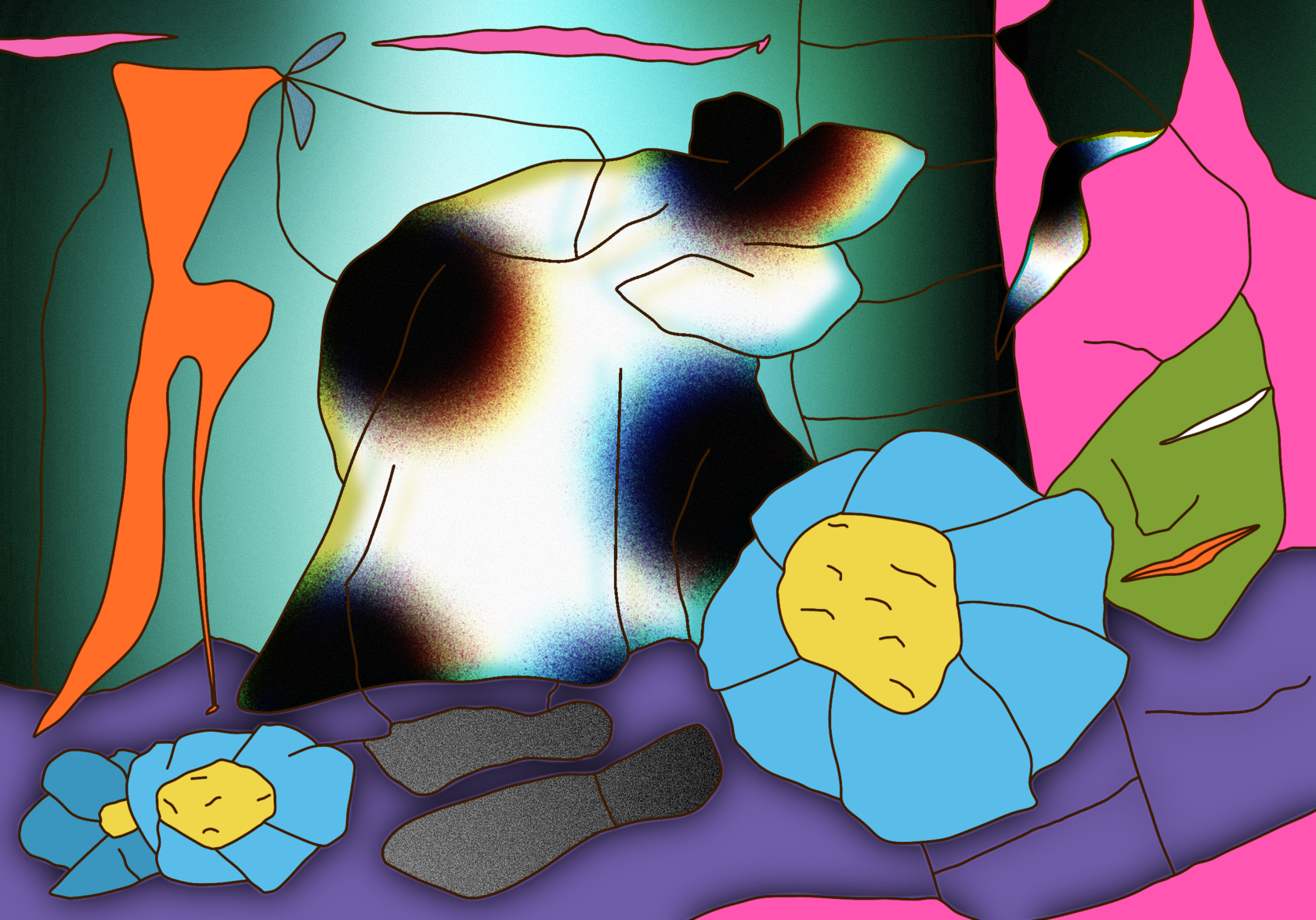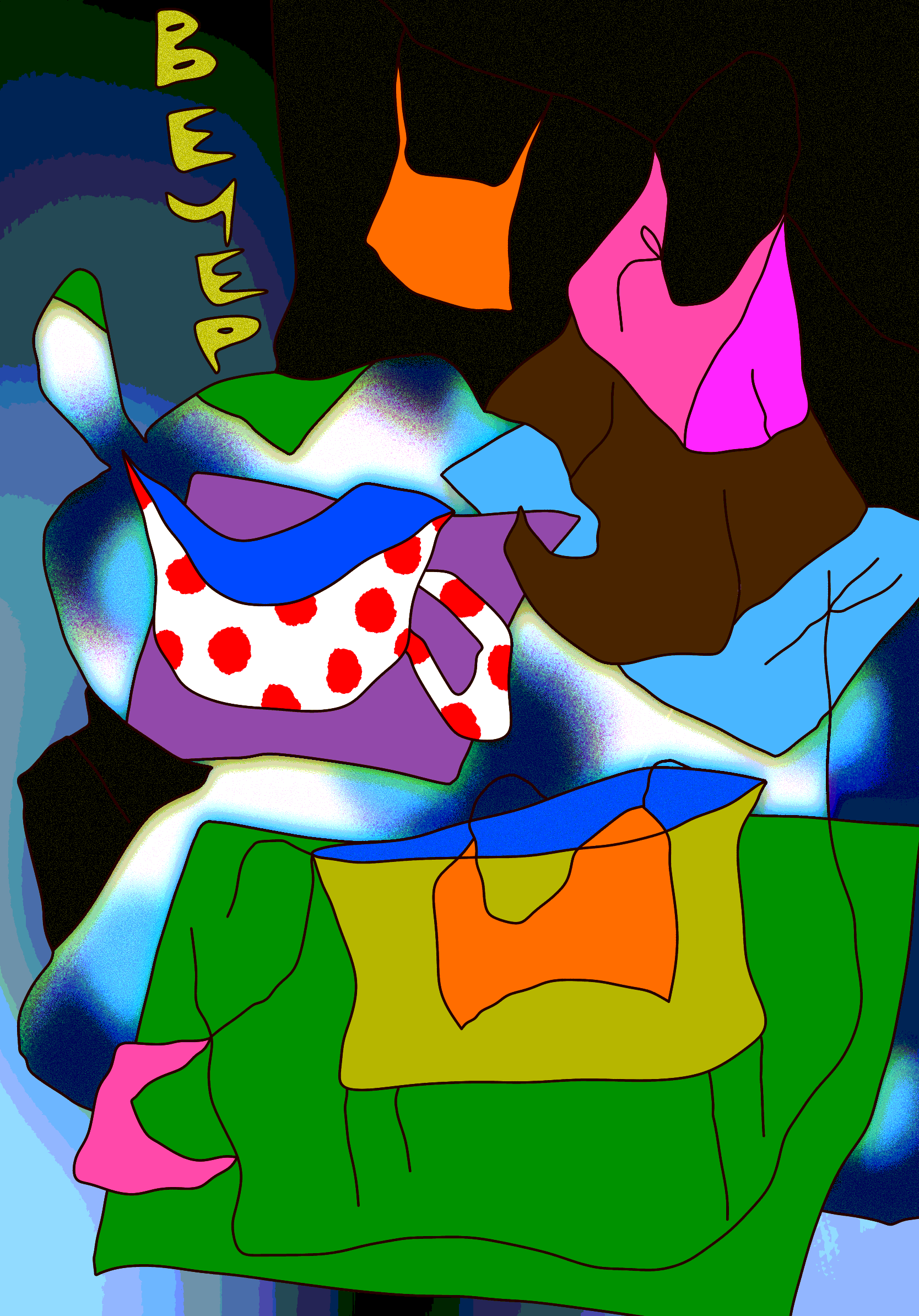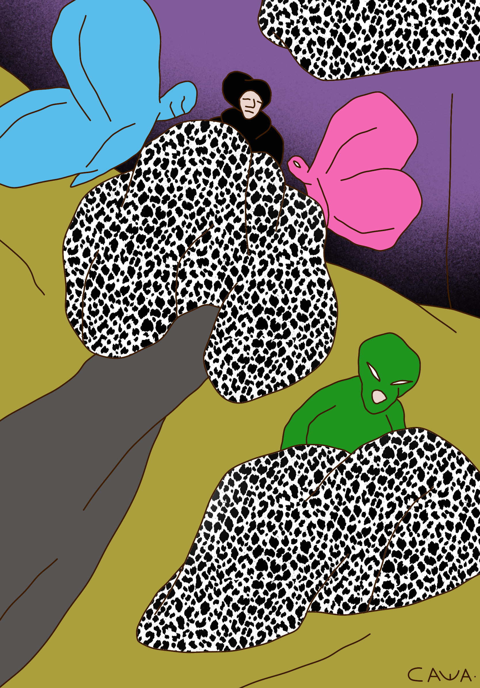 Tragicomic subtly trembling acid surrealism. The viewer is invited to an expressive, slightly absurd spectacle with openly odd colorful characters and their unhurried days, delicate issues and frequent changes of mood.